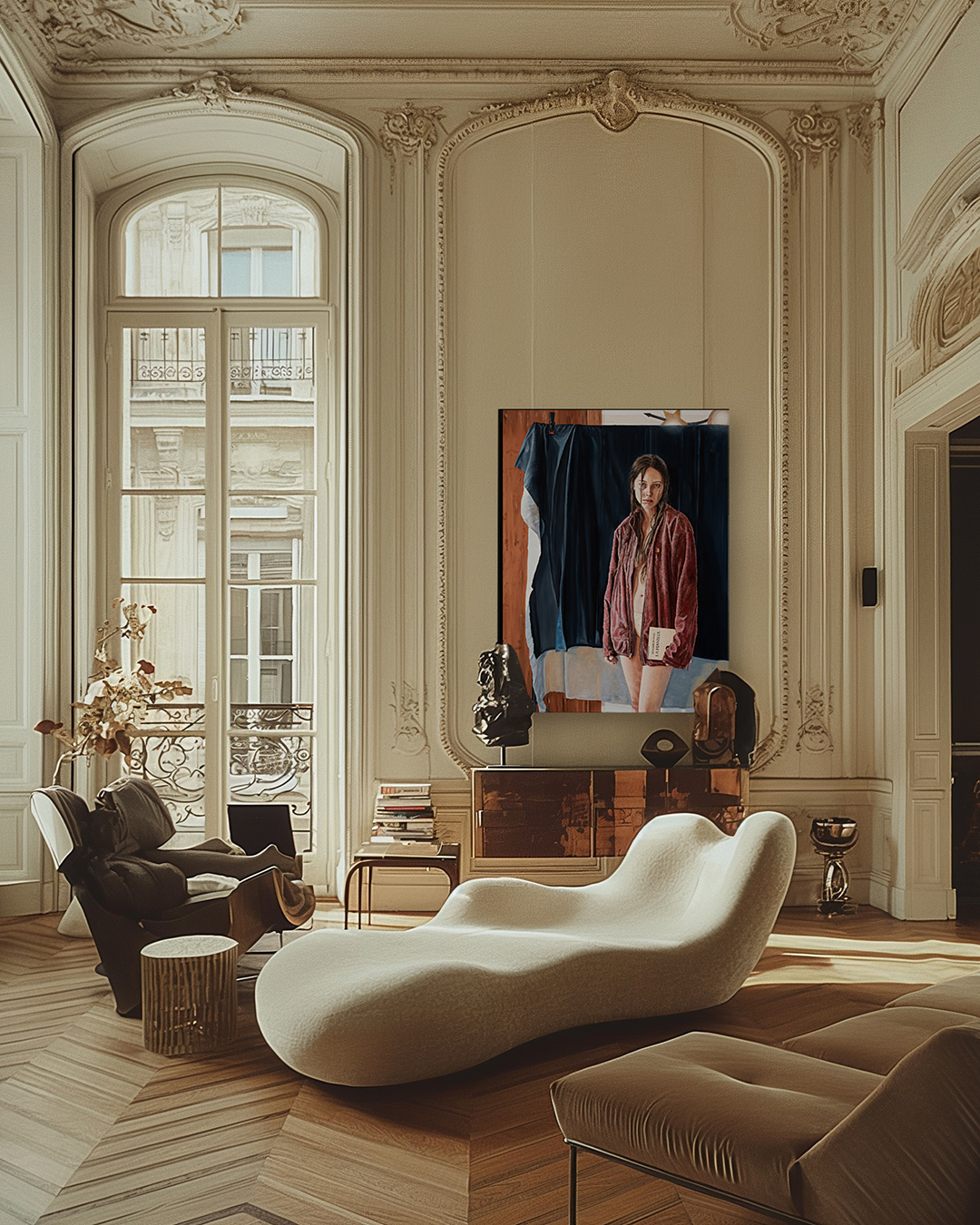 #imagine a quiet morning in the centre of Paris. You have had your coffee and put on a record. You tread lightly on the Herrington parquet so as not to spoil this idle moment. For a second, your eyes linger on the room and the art collection. You greet the figure in the painting like an old friend, the one who has seen it all and confronted you with it all the time. But you don’t mind, on the contrary. She knows, and yet she has never given up on you. Her gaze is always challenging but never judgmental. You wonder if she likes the newly redecorated interior… you should get her some flowers. Lilies. But not now. You take a breath, savour the peace and quiet, the perfect morning sun. Soon life will take over, the noise will get louder, the pace will speed up. But not now…